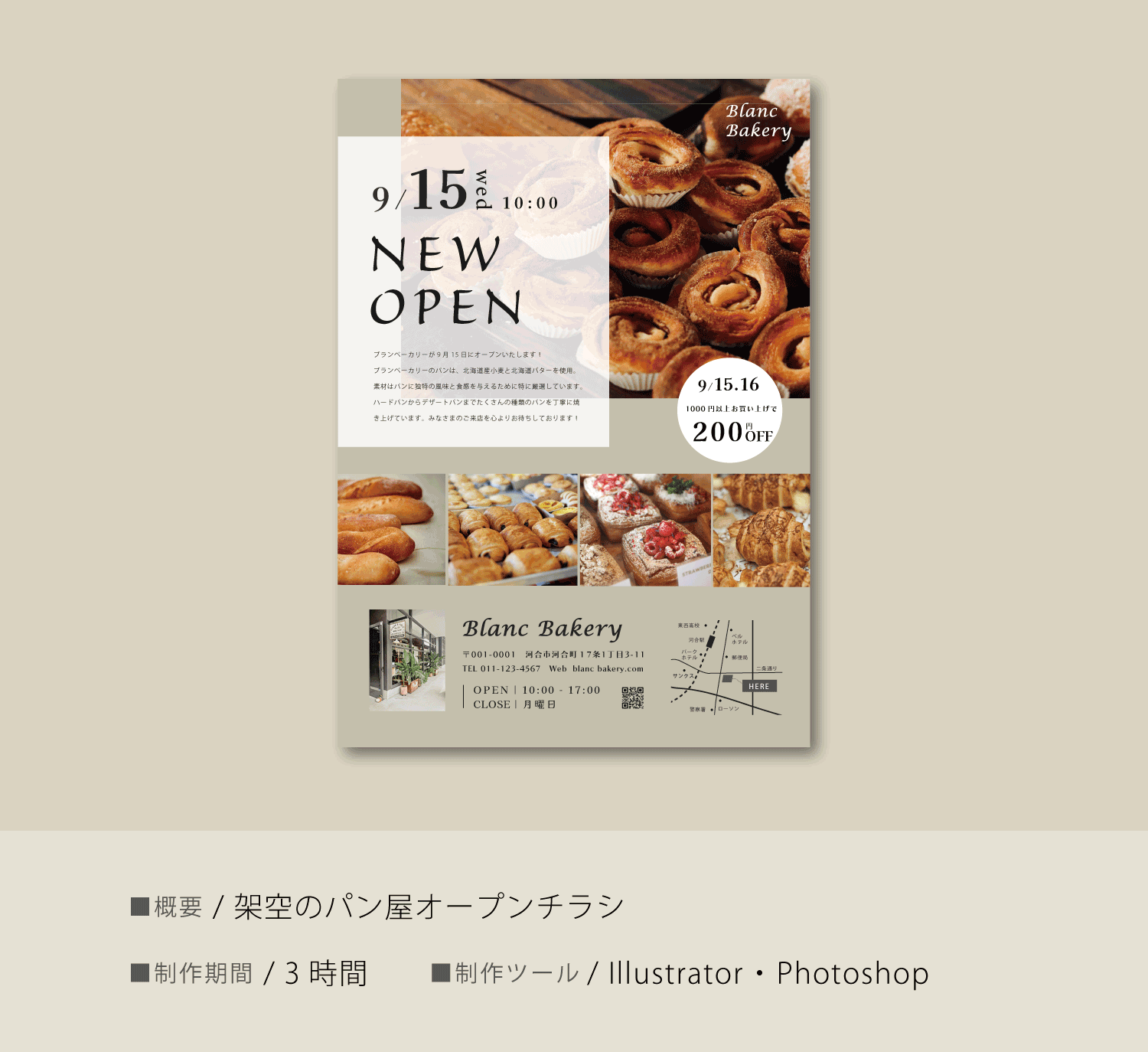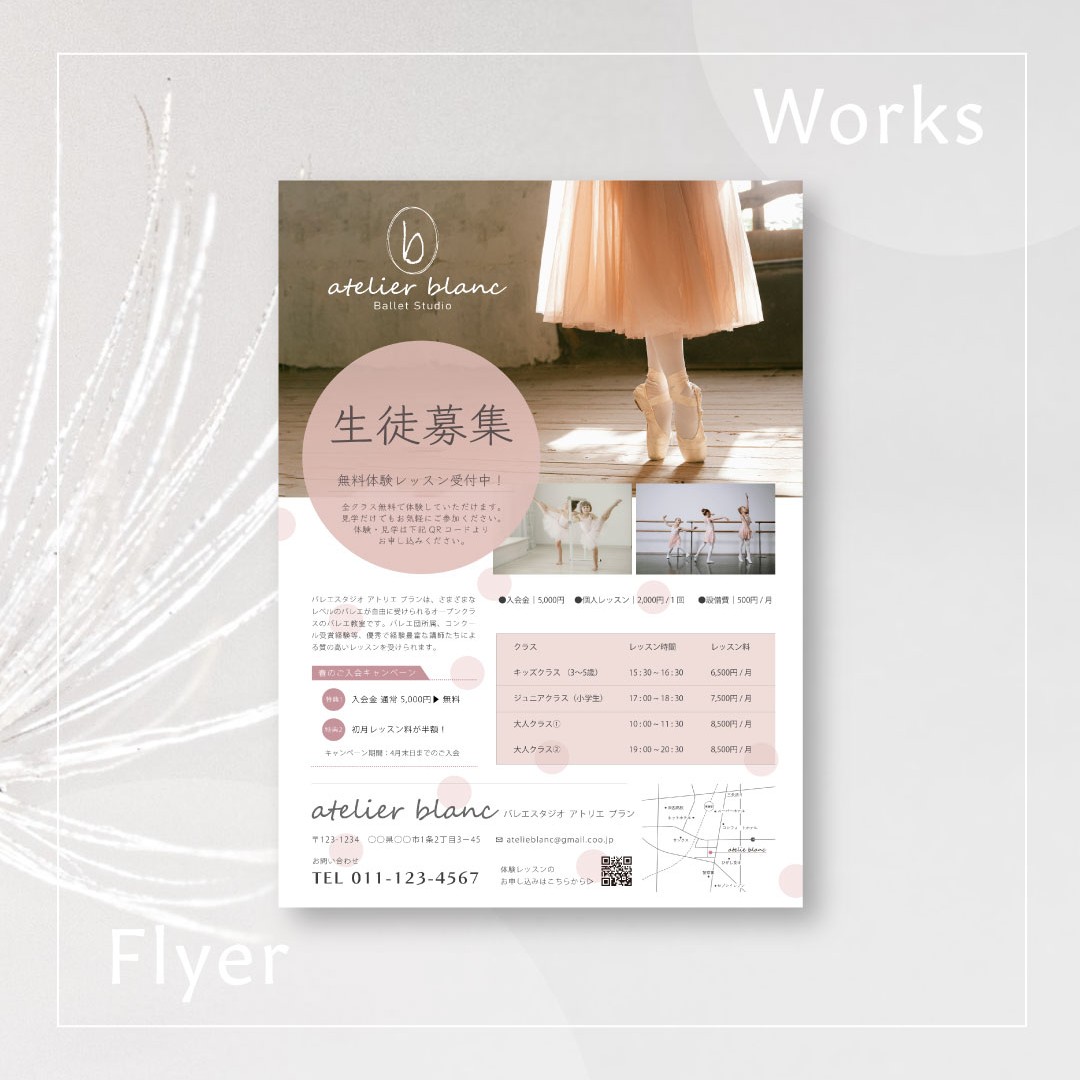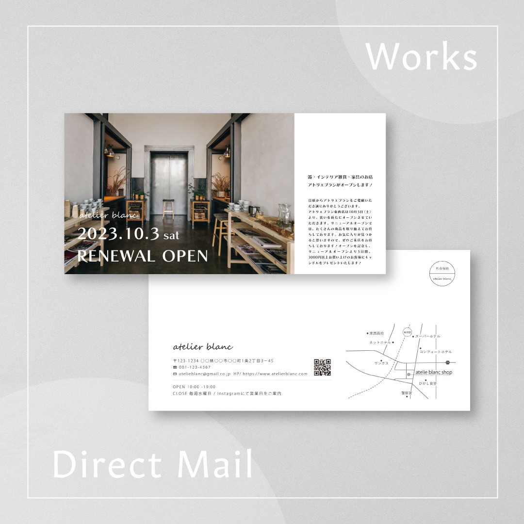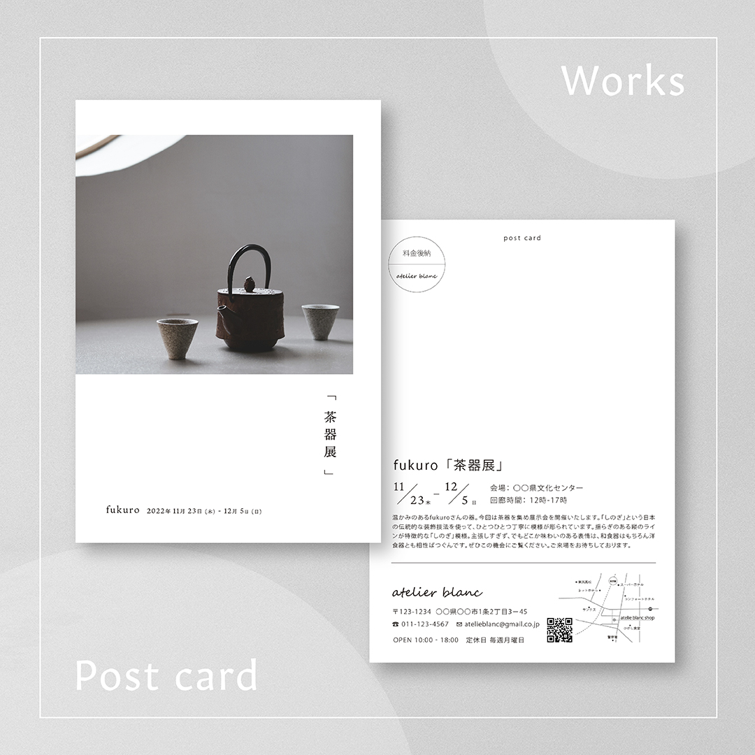 ポスター、名刺、DM、ロゴなどのグラフィックデザイン、バナーやWebサイトなどのウェブデザインができます。 余白を大事にしながら、コンセプトや雰囲気に合わせたフォントを使用し、配置や文字間など 細部にまでこだわり制作します。
