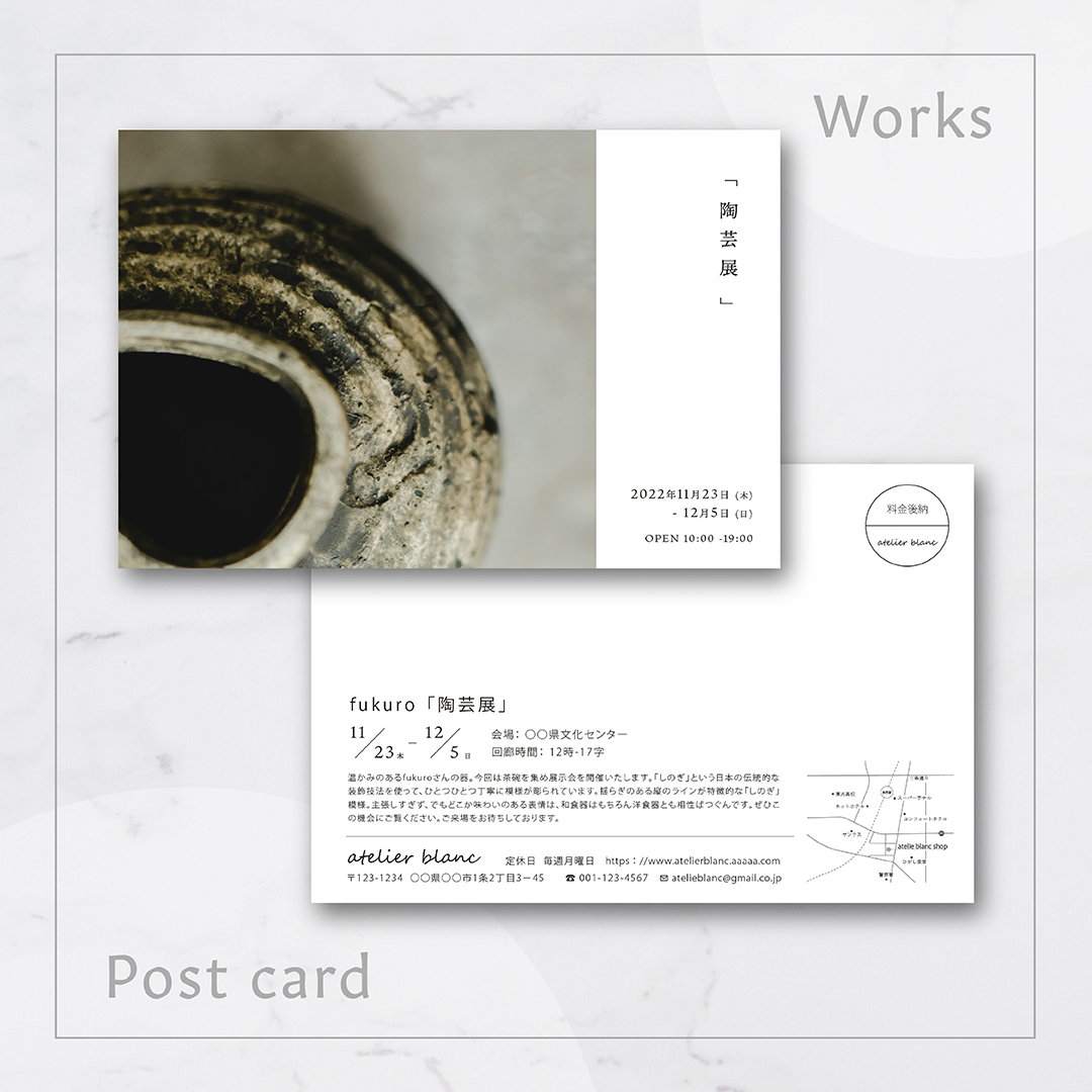 ポスター、名刺、DM、ロゴなどのグラフィックデザイン、バナーやWebサイトなどのウェブデザインができます。 余白を大事にしながら、コンセプトや雰囲気に合わせたフォントを使用し、配置や文字間など 細部にまでこだわり制作します。